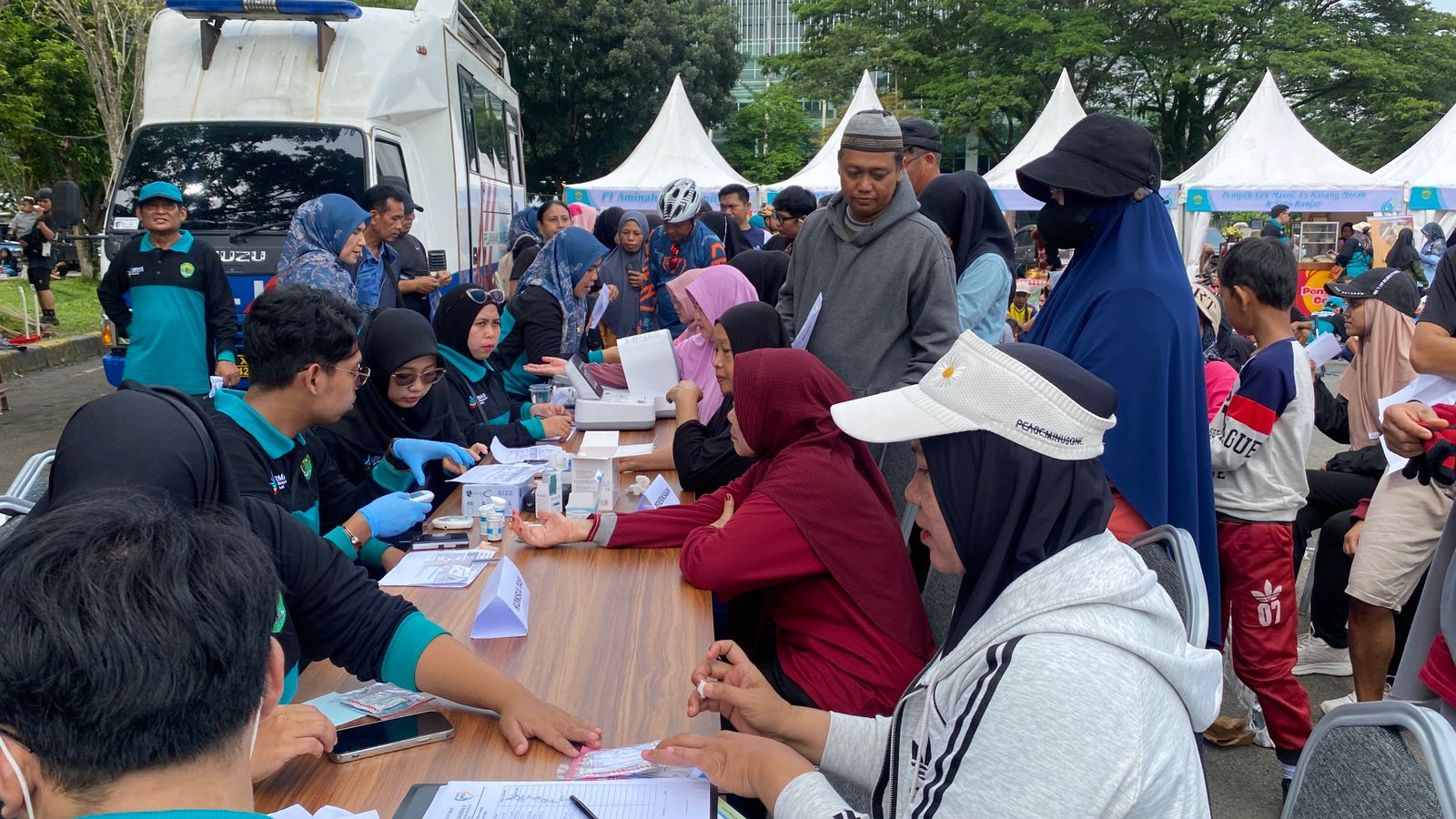 “Petugasnya ramah dan cepat. Saya langsung tahu kadar gula dan kolesterol saya. Biasanya saya harus ke klinik dan bayar, tapi hari ini semua gratis,” ujarnya.