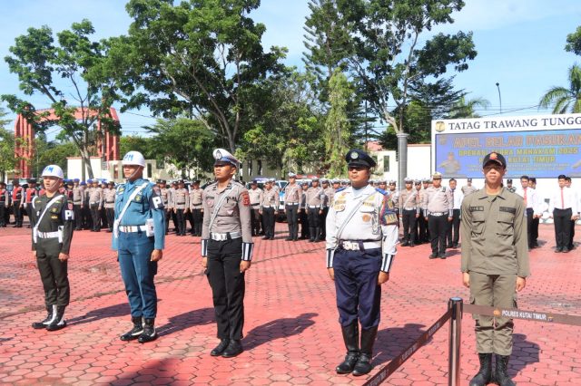 Dalam apel, Kapolres menyematkan pita operasi kepada perwakilan personel sebagai tanda dimulainya kegiatan penegakan hukum dan peningkatan kedisiplinan lalu lintas di seluruh wilayah Kutai Timur.