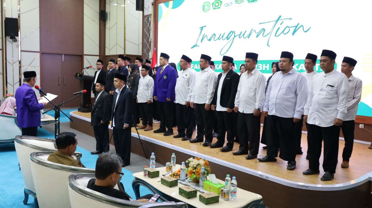 Pada kesempatan yang sama, Rektor Unikarta **Prof. Dr. Ir. Ince Raden, M.P., disaksikan oleh Asisten II Ahyani Fadianur, mengukuhkan Lembaga Pendamping Proses Produk Halal Unikarta dan Ikatan Keluarga Alumni FAI Unikarta.