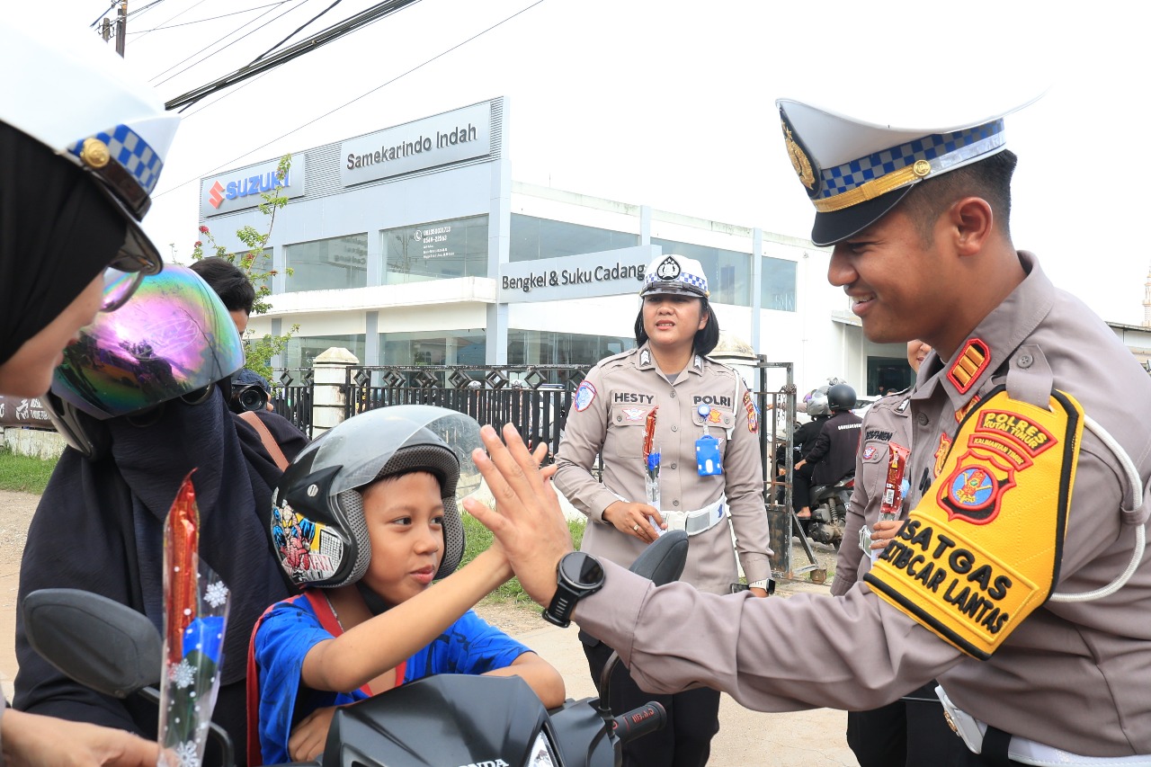 Ia juga mengimbau masyarakat untuk selalu mematuhi aturan lalu lintas dan menjaga keselamatan keluarga saat berkendara. “Kami berharap orang tua menempatkan keselamatan anak sebagai yang utama. Helm bukan sekadar kewajiban, tetapi perlindungan nyawa,” tambahnya.