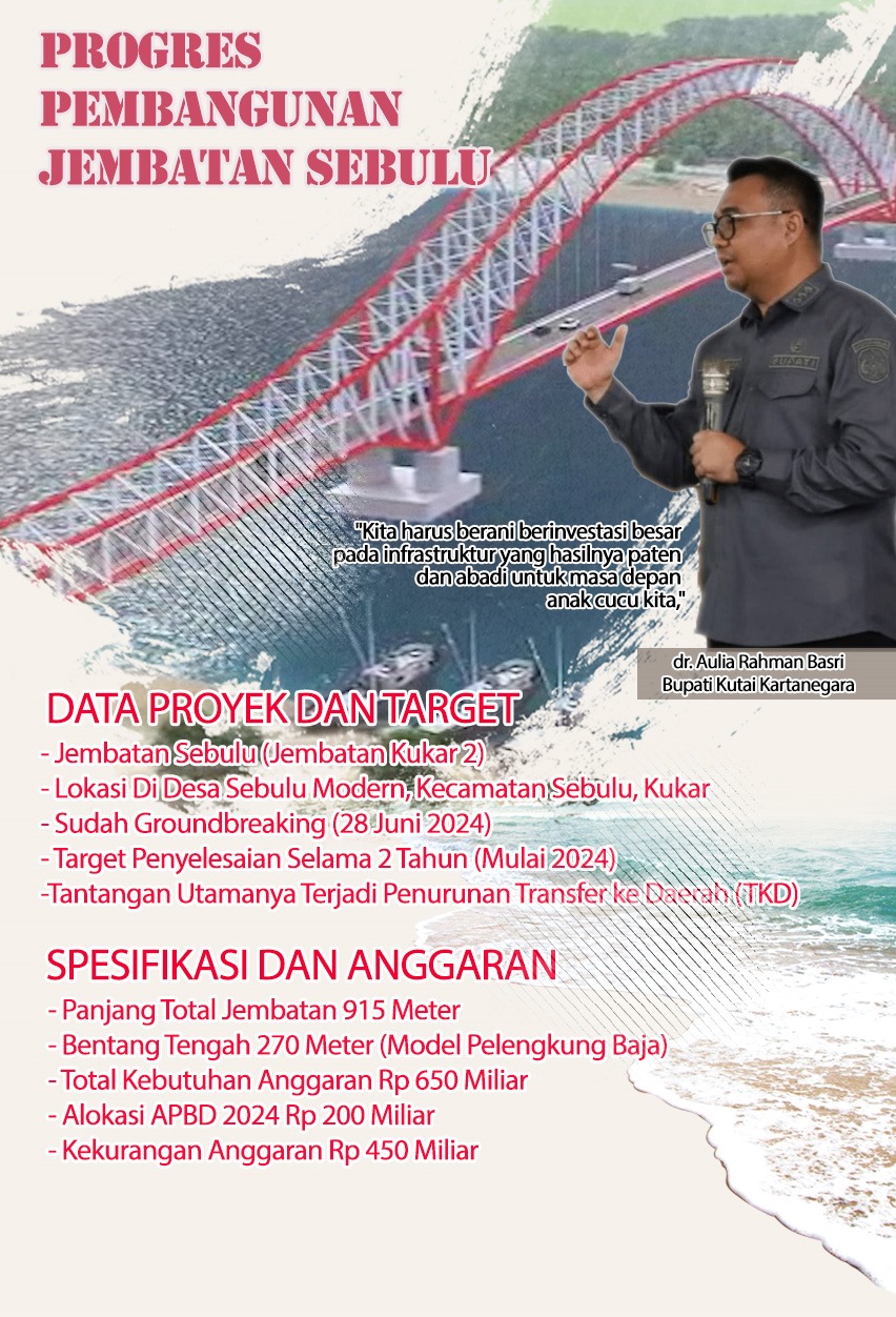 Bupati Kukar, dr. Aulia Rahman Basri, pada Jumat (21/11/2025) menyatakan bahwa progres jembatan terus berjalan. Namun, kondisi fiskal daerah yang tertekan pasca penurunan TKD menjadi perhatian serius dalam penyelesaian proyek.