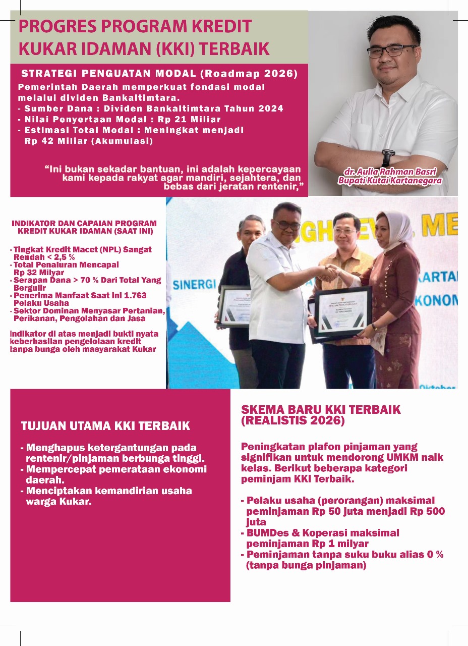 Kutai Kartanegara, Kalimantan Timur – Pemerintah Kabupaten Kutai Kartanegara (Kukar) mencatatkan keberhasilan dalam pengelolaan program Kredit Kukar Idaman (KKI) Terbaik. Program pembiayaan tanpa bunga ini mencatatkan tingkat kredit macet (Non-Performing Loan/NPL) yang sangat rendah, yakni di bawah 2,5 persen.