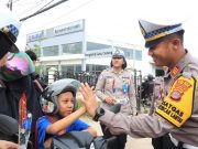 Penindakan dan Kepedulian Berjalan Seiring: Polres Kutim Bagikan Helm Anak di Ops Zebra 2025