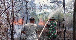 Aksi Sigap Babinsa Koramil 0902-04/Trd Padamkan Karhutla di Teluk Bayur